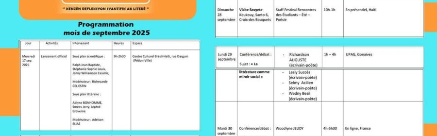 Parmi les invités d’honneur et intervenants attendus figurent Ralph Jean-Baptiste, Stéphane Sophie Louis, Jenny Williamson Casimir, Smeev Jerry, Adlyne Bonhomme et Jephté Estiverne.