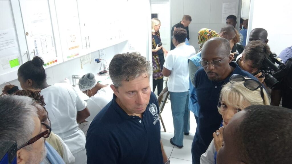 La délégation onusienne a également visité l’Hôpital universitaire La Paix, l’unique centre hospitalier public encore pleinement opérationnel à Port-au-Prince. Fletcher a salué le courage du personnel soignant, qui continue de prendre en charge les enfants malnutris et les femmes enceintes malgré des moyens limités. Il a toutefois alerté sur le risque de voir une grande partie du personnel d’urgence quitter l’établissement avant la fin du mois, faute de financement.