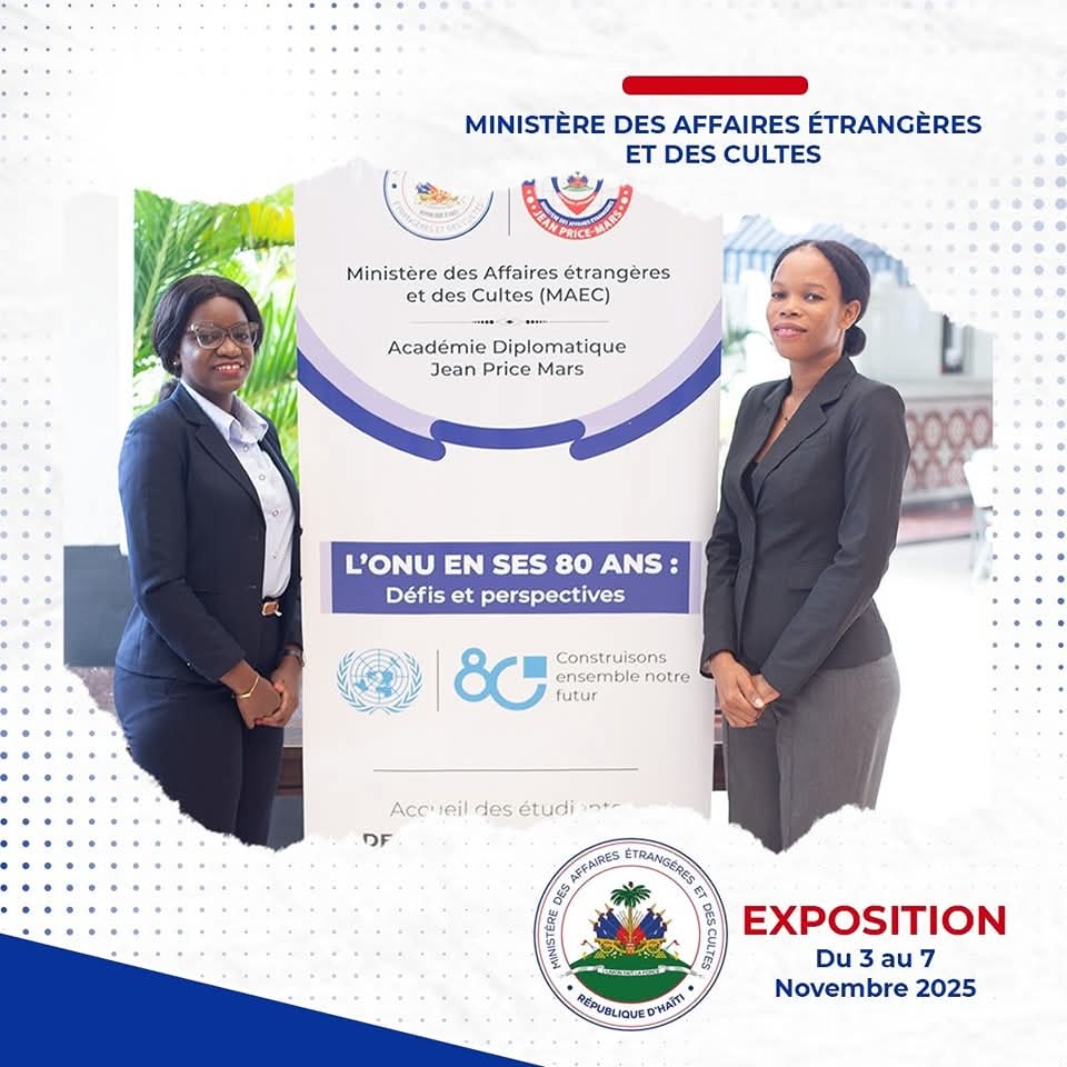 Port-au-Prince, 7 novembre 2025 — Le Ministère des Affaires étrangères et des Cultes (MAEC) a procédé ce vendredi à la clôture de l’exposition « Haïti et les Nations Unies : 80 ans de diplomatie active », organisée dans le cadre du colloque international « L’Organisation des Nations Unies en ses 80 ans : défis et perspectives ».