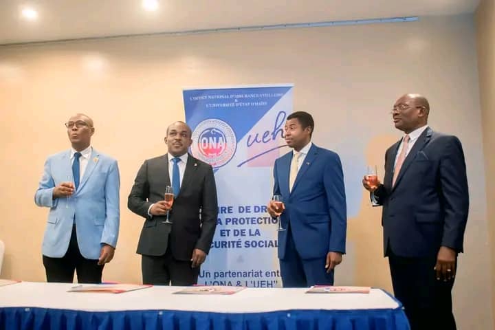 L’Université d’État d’Haïti (UEH) et l’Office National d’Assurance Vieillesse (ONA) ont signé, ce vendredi 14 novembre 2025 à l’Hôtel Oasis, un accord inédit portant sur la création de la première Chaire universitaire de Droit de la Protection et de la Sécurité Sociale en Haïti. Un partenariat majeur pour consolider le système national de protection sociale.