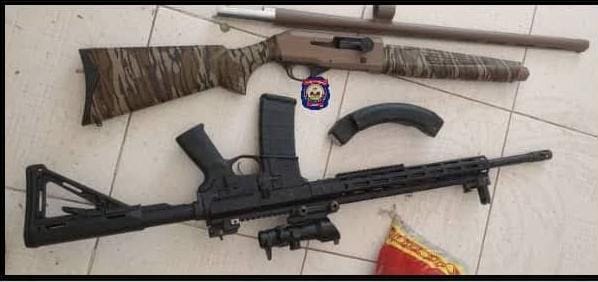 Les agents ont saisi un fusil de calibre 12, un fusil de type M4 ainsi qu’un chargeur double compatible avec cette arme.