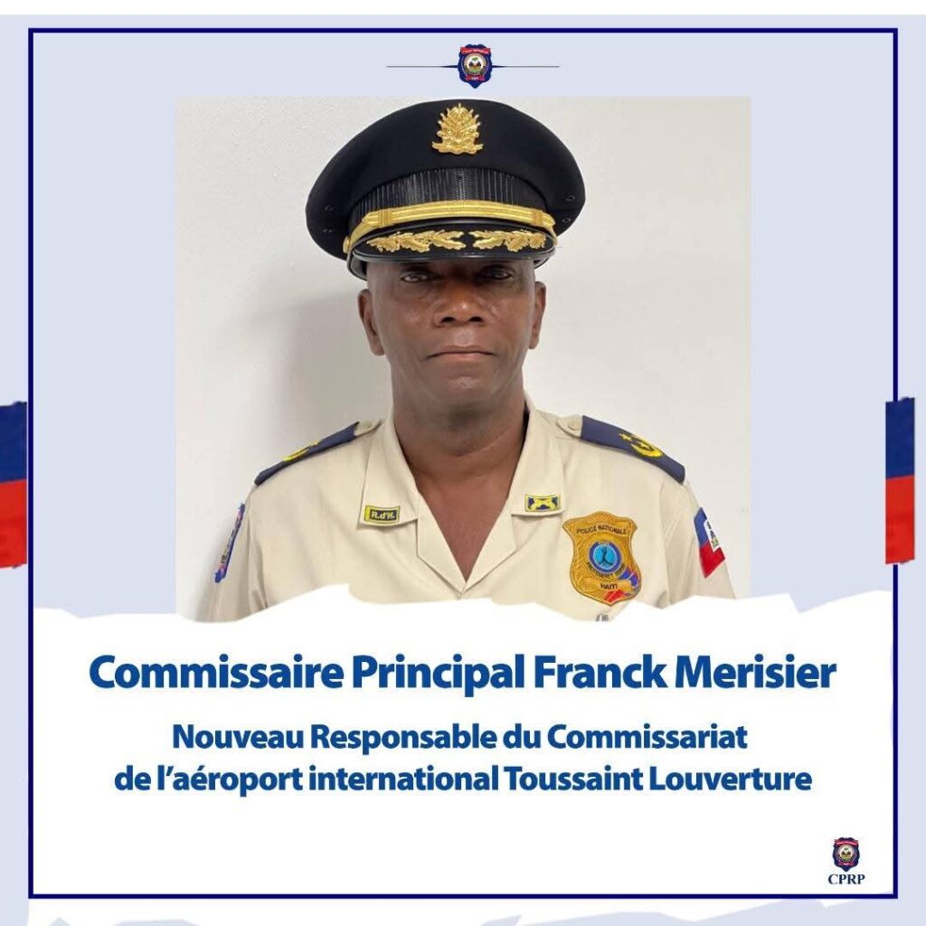 Port-au-Prince, 16 août 2025._Dans le cadre des récentes réaffectations au sein de la Police nationale d’Haïti (PNH), le Commissaire Principal Franck Merisier a été officiellement installé ce samedi 16 août 2025 à la tête du commissariat de l’aéroport international Toussaint Louverture. Il succède à son collègue Sergo Dasmy, relevé de ses fonctions.